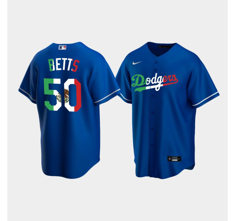 - #50 Mookie Betts Dodgers Men's Replica Mexican Heritage Night Jersey - Royal
