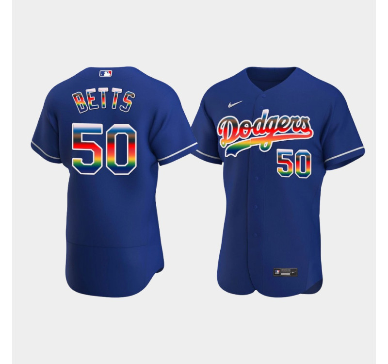 - #50 Mookie Betts Dodgers Men's Royal On-Field 2022 Pride Month Edition Jersey