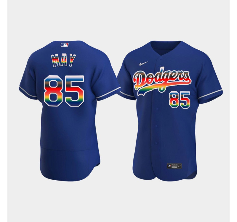 - #85 Dustin May Dodgers Men's Royal On-Field 2022 Pride Month Edition Jersey
