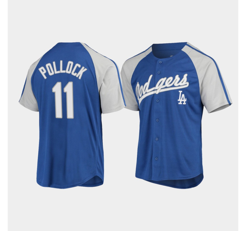 - Dodgers AJ Pollock Button-Down Raglan Replica Men's Jersey - Royal