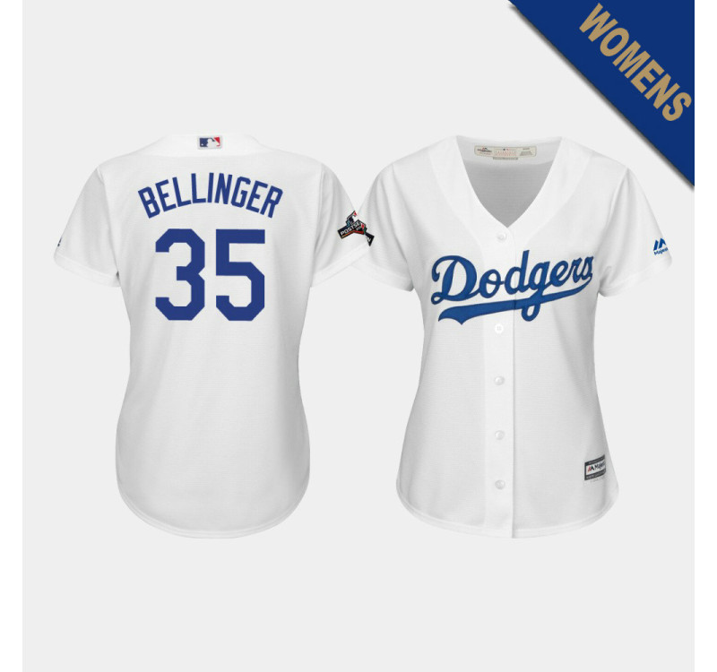 - Women's Dodgers #35 Cody Bellinger 2019 Postseason White Official Home Cool Base Jersey