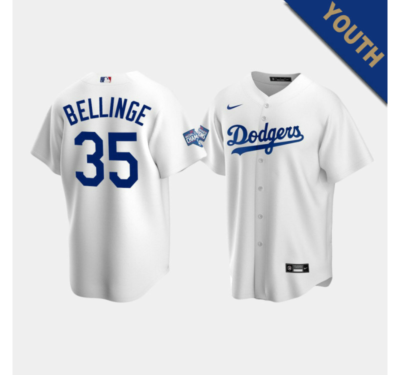 - Kid's Dodgers Cody Bellinger #35 White 2020 World Series Champions Home Replica Jersey