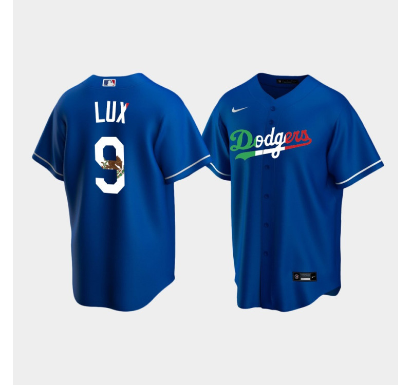 • #9 Gavin Lux Dodgers Men's Replica Mexican Heritage Night Jersey - Royal