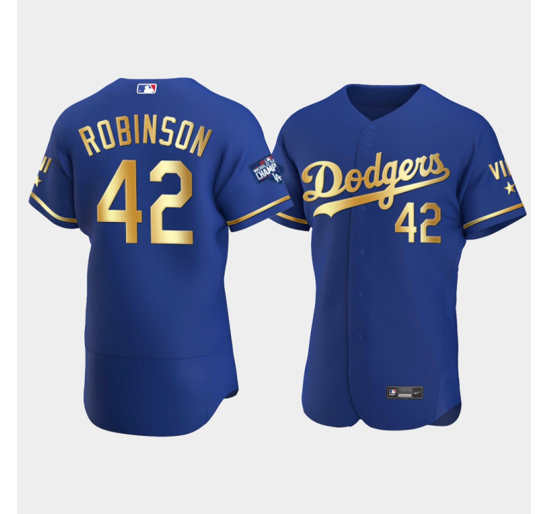 - Men Dodgers Jackie Robinson Royal 2021 Gold Program World Series Champions Jersey