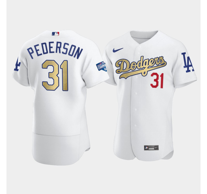 - Men's Dodgers Joc Pederson White 2021 Gold Program Authentic Patch Jersey