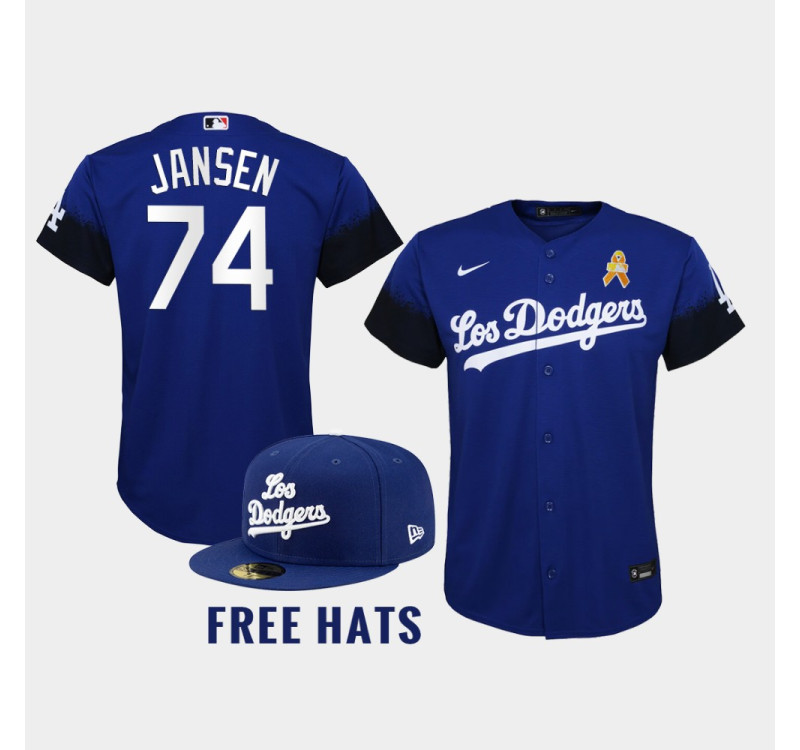 - Men Dodgers Kenley Jansen #74 Royal Childhood Cancer Awareness Day 2021 Gold ribbons Jersey