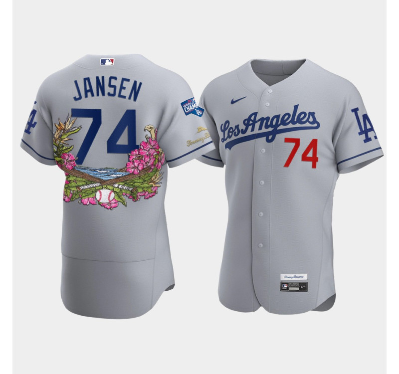 - Men's Dodgers #74 Kenley Jansen Gray 2020 World Series Champions Authentic Tommy Bahama Jersey