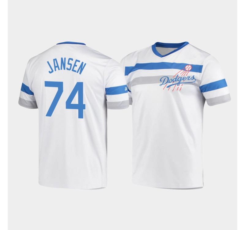 - Men's Dodgers Kenley Jansen White Cooperstown Collection V-Neck Jersey
