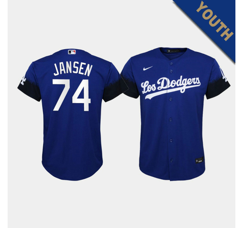 - Kid's Dodgers Kenley Jansen #74 Royal 2021 City Connect Replica Jersey