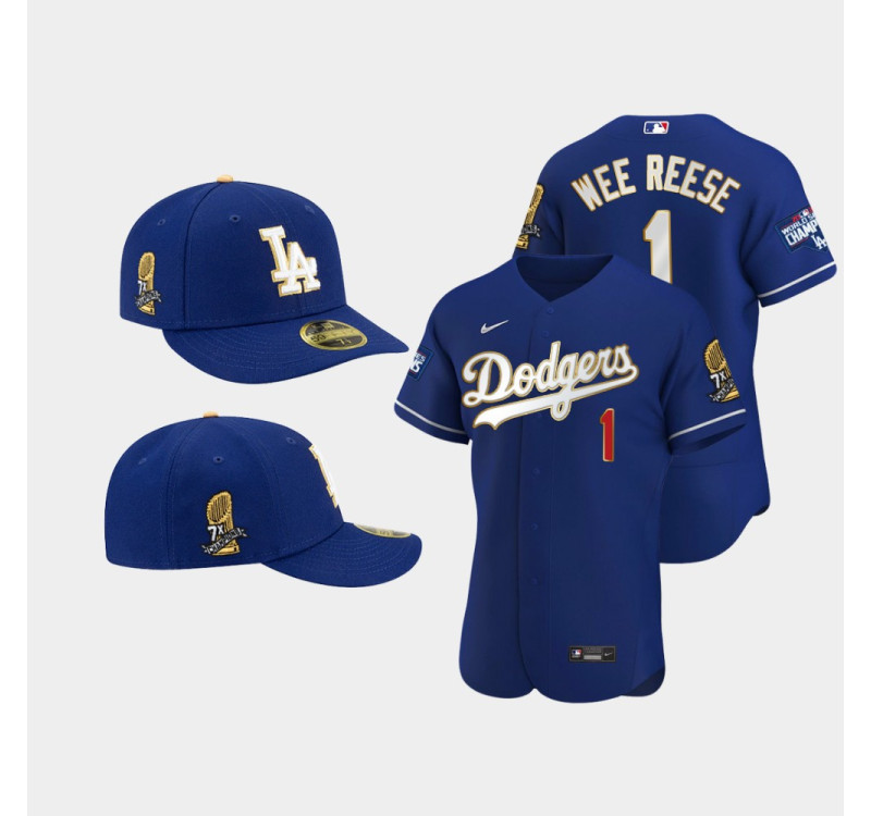 - Men Dodgers Pee Wee Reese Royal 7X Champs Trophy Jersey Cap Jersey