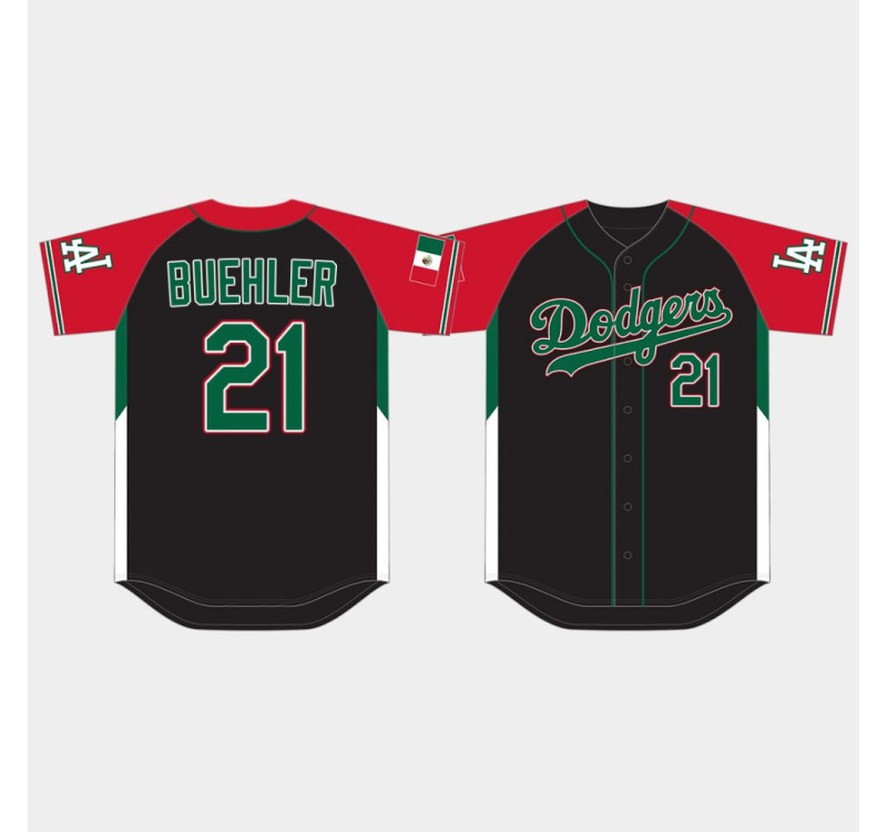 - Men Dodgers #21 Walker Buehler Black 2021 Mexican Heritage Night Limited Jersey