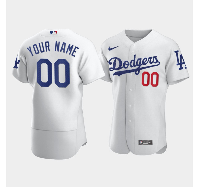 Men's Los Angeles Dodgers #00 Custom White Authentic Jersey