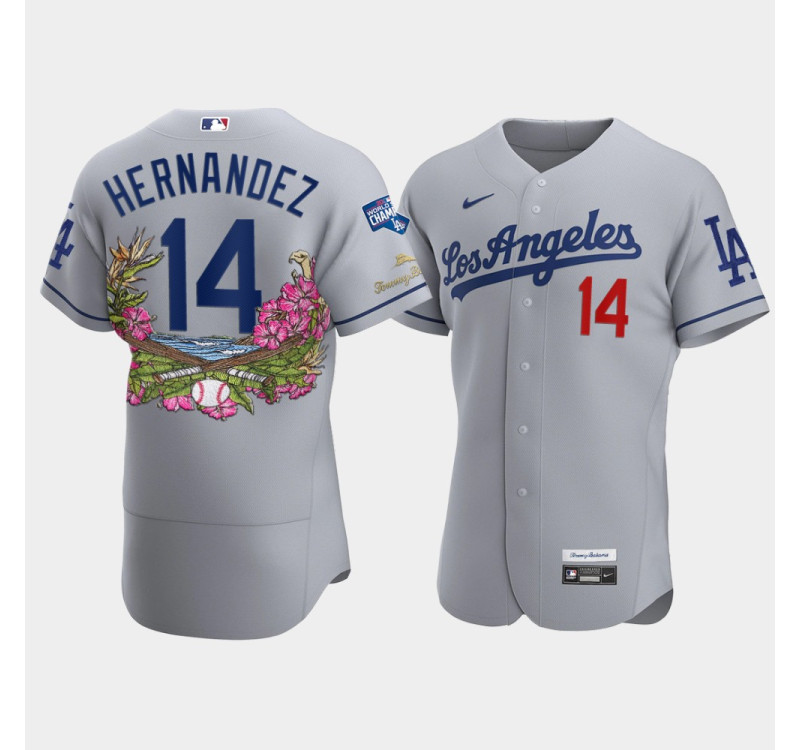 - Men's Dodgers #14 Enrique Hernandez Gray 2020 World Series Champions Authentic Tommy Bahama Jersey