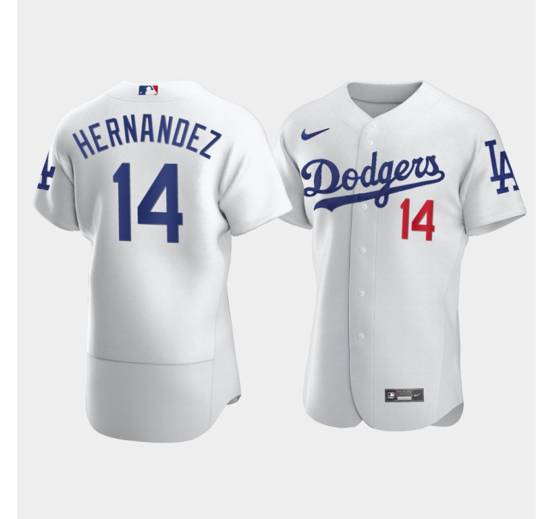 - Men's Dodgers #14 Enrique Hernandez White Authentic Jersey