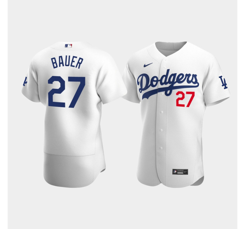 - Men's Dodgers #27 Trevor Bauer White Authentic Home Player Jersey