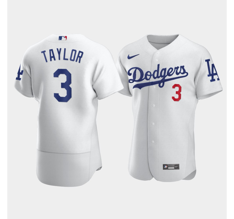 - Men's Dodgers #3 Chris Taylor White Authentic Jersey