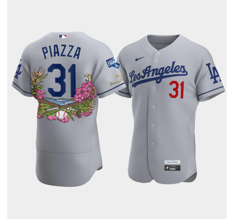 - Men's Dodgers #31 Mike Piazza Gray 2020 World Series Champions Authentic Tommy Bahama Jersey