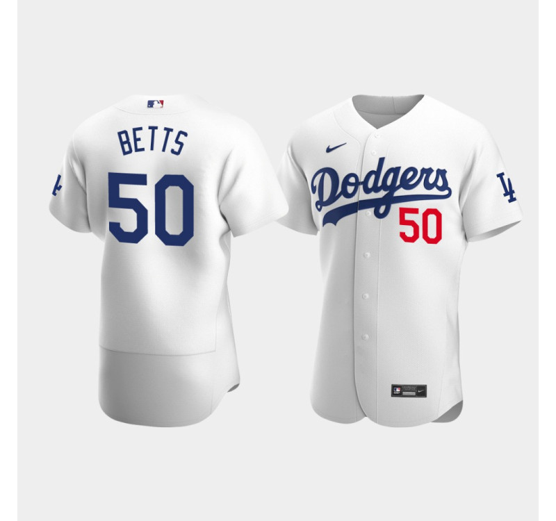 - Men's Dodgers #50 Mookie Betts White Authentic Home Player Jersey
