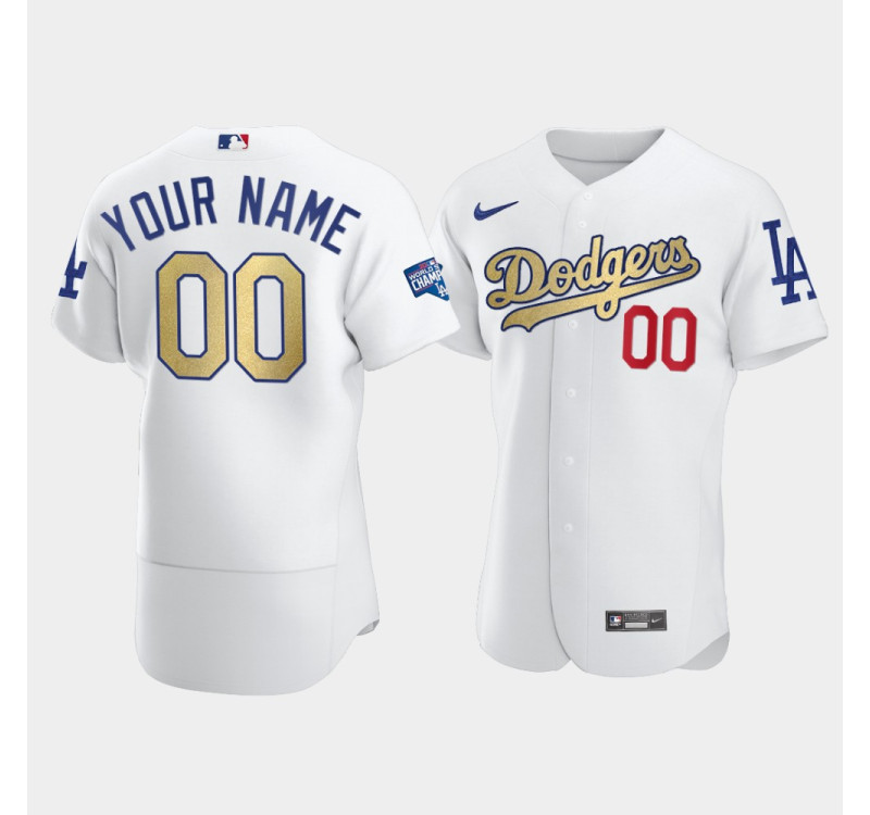 Men's Los Angeles Dodgers Custom White 2021 Gold Program Authentic Patch Jersey