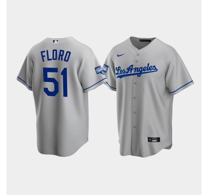 - Men's Dodgers Dylan Floro Gray 2020 World Series Champions Road Replica Jersey