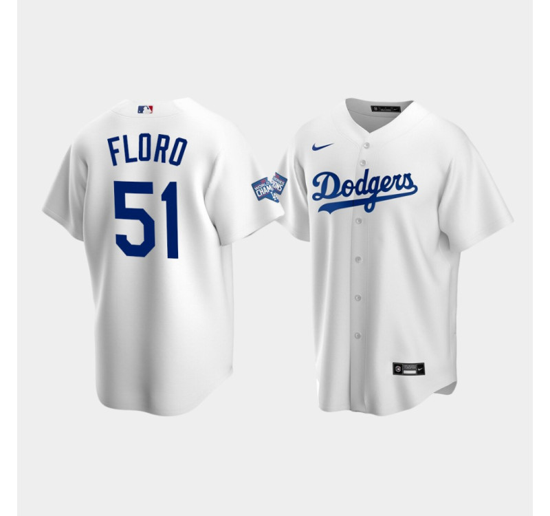 - Men's Dodgers Dylan Floro White 2020 World Series Champions Home Replica Jersey