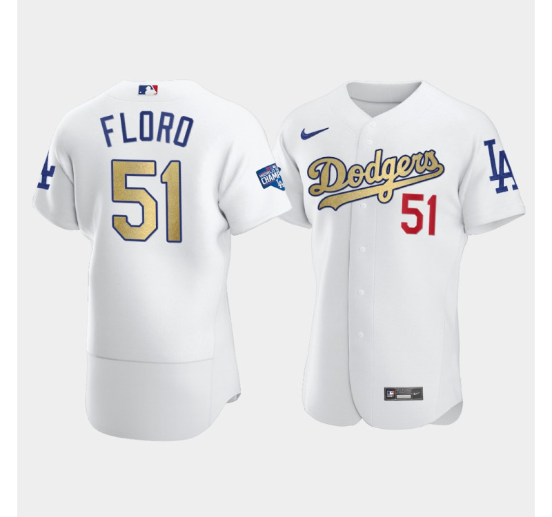 - Men's Dodgers Dylan Floro White 2021 Gold Program Authentic Patch Jersey