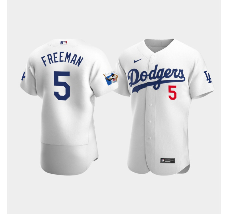 - Men's Dodgers Freddie Freeman White Home Authentic Jersey - Jackie Robinson 75th Anniversary