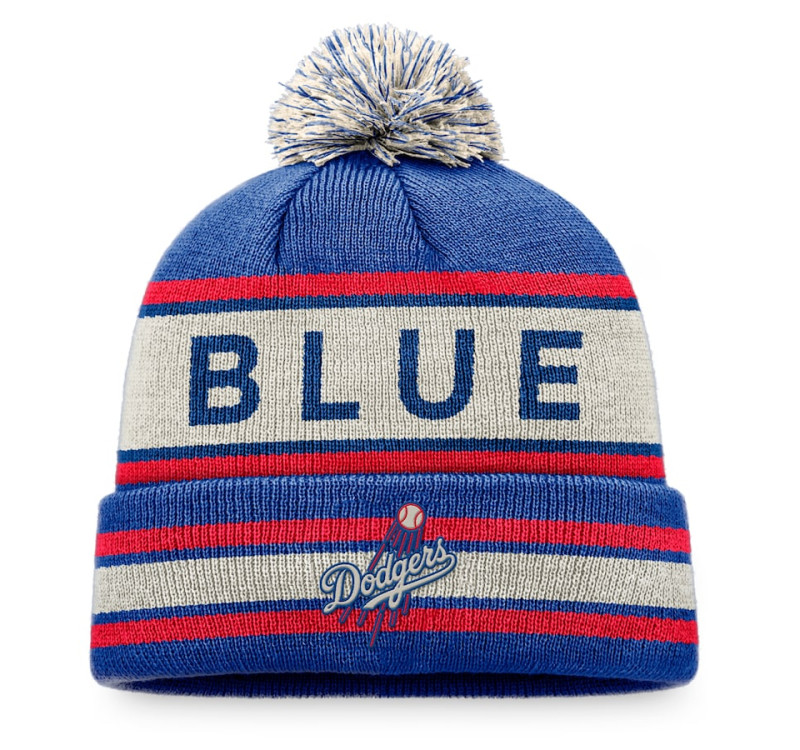 Rep your Dodgers pride in Adult Men's Los Angeles Dodgers Baseball Hometown Slogan Cuffed Knit Hat with Pom - Royal/Natural, designed to radiate team loyalty from the bleachers to your living room. Crafted with Dri-FIT technology to wick away sweat and a tailored athletic fit, this crisp white jersey combines vibrant Dodgers graphics with all-day comfort. Cheer louder. Stay sharper. Its clean lines and breathable fabric ensure you'll look sharp and stay cool, whether celebrating a home run or rallying through extra innings. Elevate your fan gear with a piece that's as game-day ready as you are.