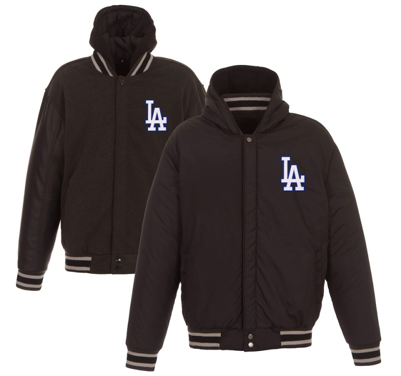 - Adult Men's Dodgers JH Design Heavyweight Reversible Full Snap baseball Hoodie - Charcoal