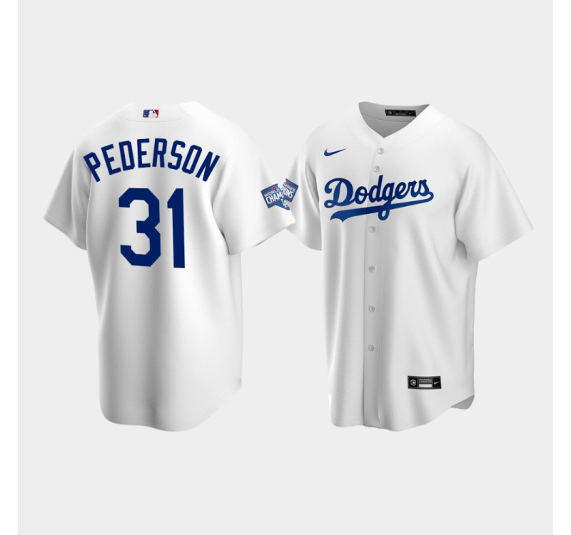 - Men's Dodgers Joc Pederson White 2020 World Series Champions Home Replica Jersey