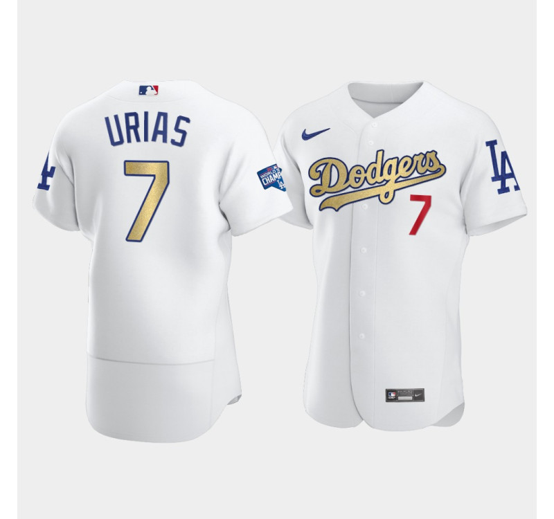 - Men's Dodgers Julio Urias White 2021 Gold Program Authentic Patch Jersey