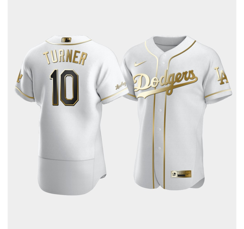 - Men's Dodgers Justin Turner #10 White Golden Edition Authentic Jersey