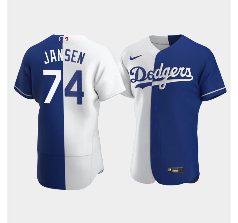 - Men's Dodgers Kenley Jansen #74 Royal Color Split Authentic Jersey