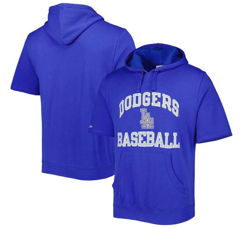 - Adult Men's Dodgers Mitchell & Ness Cooperstown Collection Washed Fleece Pullover Short Sleeve baseball Hoodie - Royal