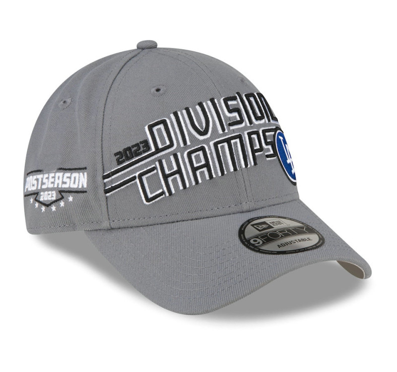 - Adult Men's Dodgers New Era 2023 NL West Division Champions Locker Room 9FORTY Adjustable Hat - Gray