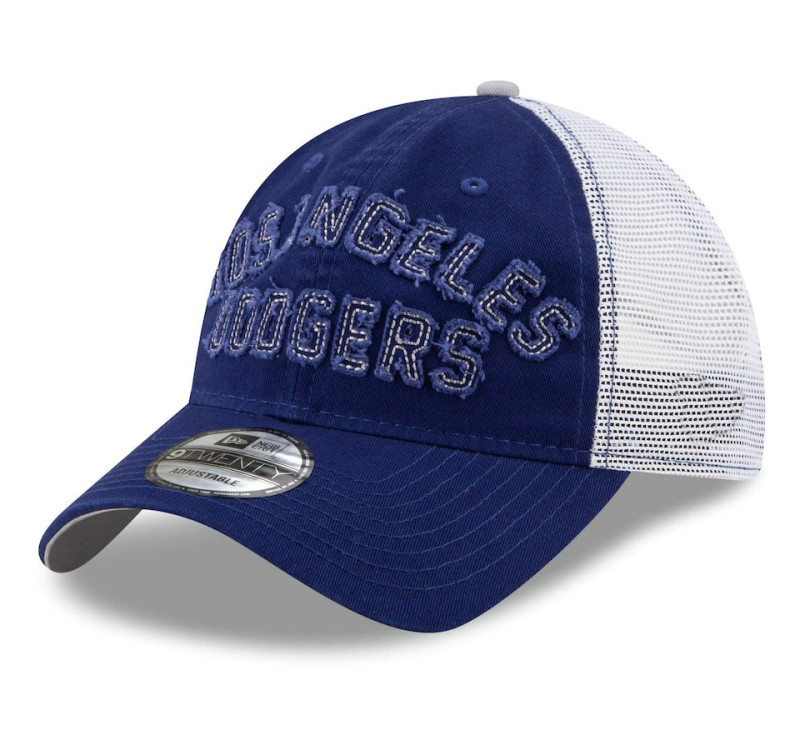 - Adult Men's Dodgers New Era Frayed Wordmark Trucker 9TWENTY Adjustable Hat - Royal
