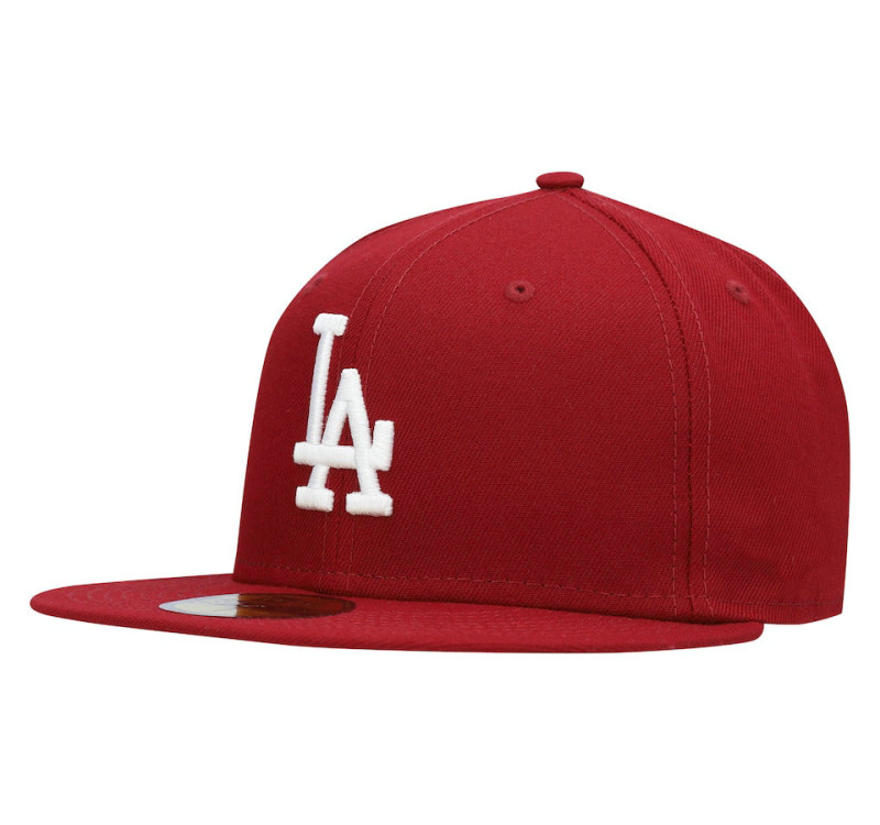 - Adult Men's Dodgers New Era White Logo 59FIFTY Fitted Hat - Cardinal