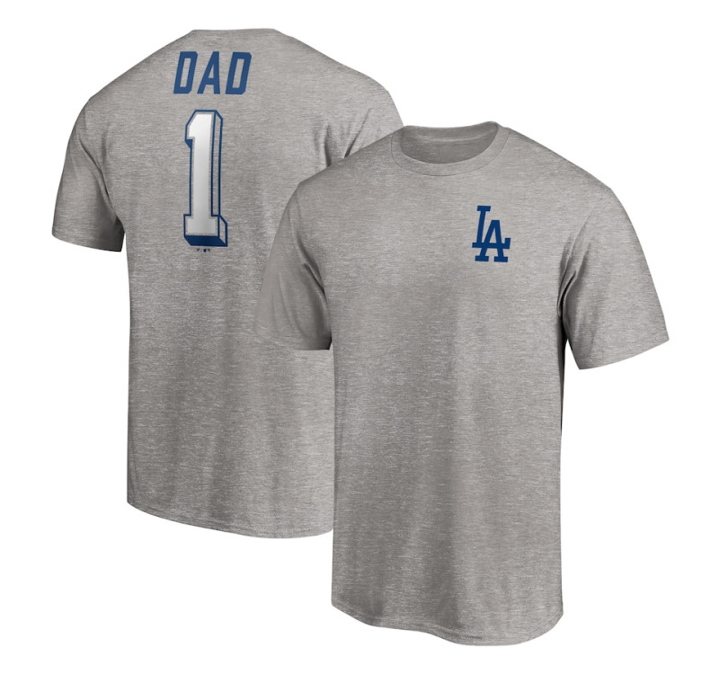 Adult Men's Los Angeles Dodgers Baseball Number One Dad baseball T-shirt - Heather Gray