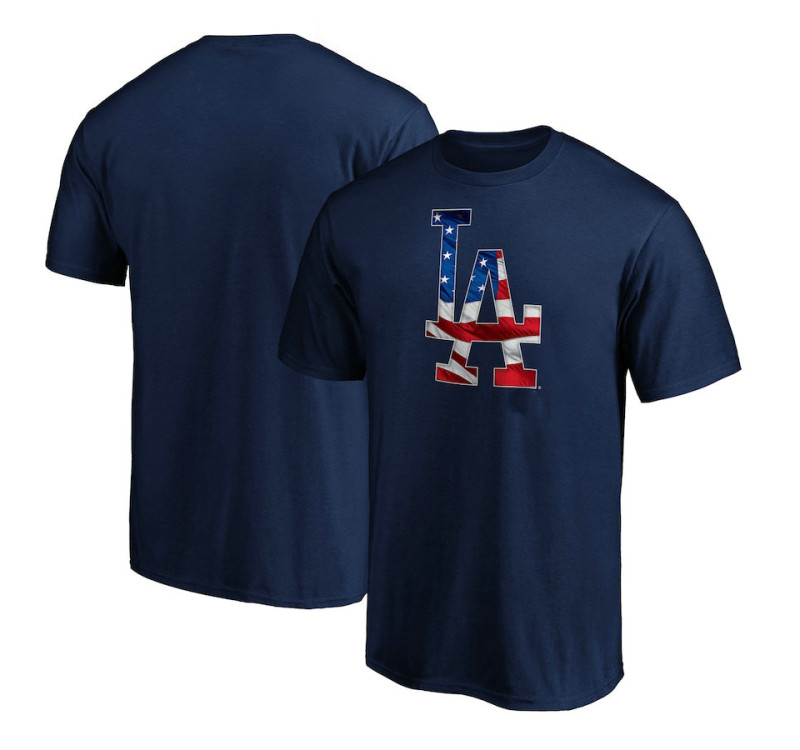 Adult Men's Los Angeles Dodgers Baseball Team Banner Wave baseball T-shirt - Navy