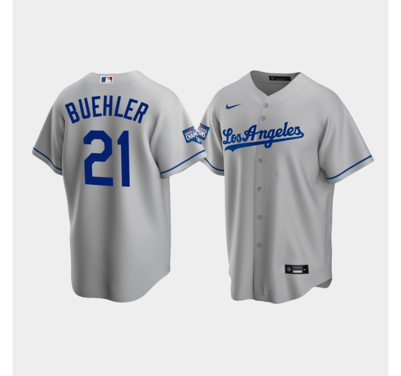- Men's Dodgers Walker Buehler Gray 2020 World Series Champions Road Replica Jersey