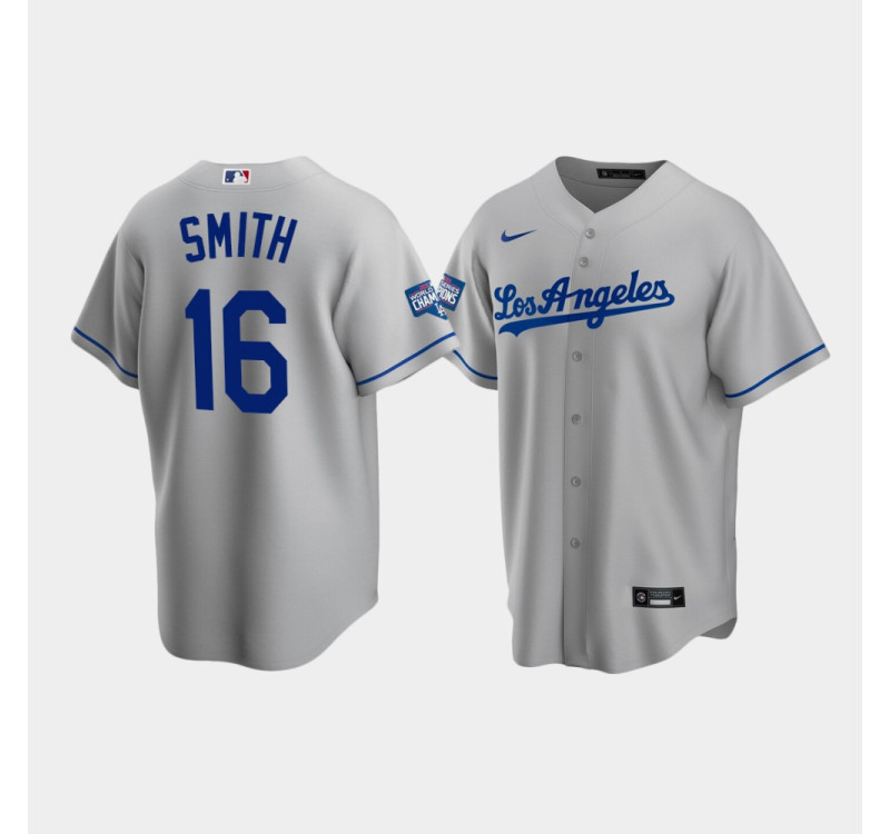 - Men's Dodgers Will Smith Gray 2020 World Series Champions Road Replica Jersey