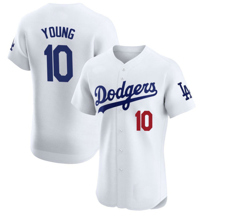 - Michael Young #10 Dodgers Home Retired Player Jersey - White Limited