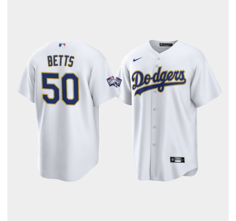 - Mookie Betts Dodgers White 2021 Gold Program Replica Jersey