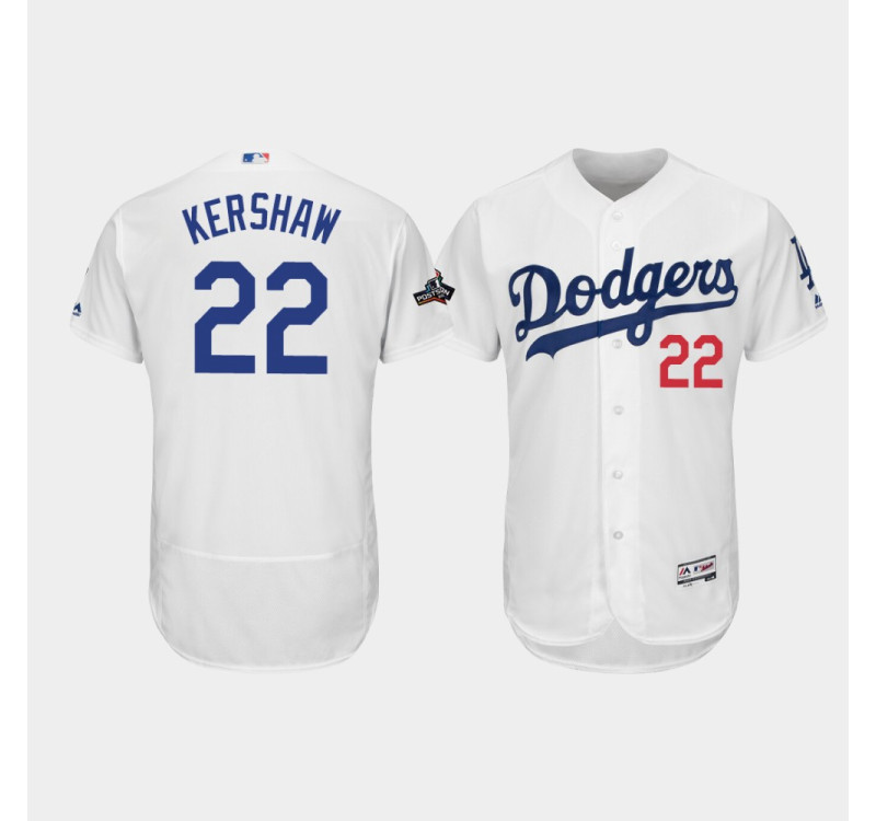 - Men's Dodgers #22 Clayton Kershaw White 2019 Postseason Authentic Home Flex Base Jersey
