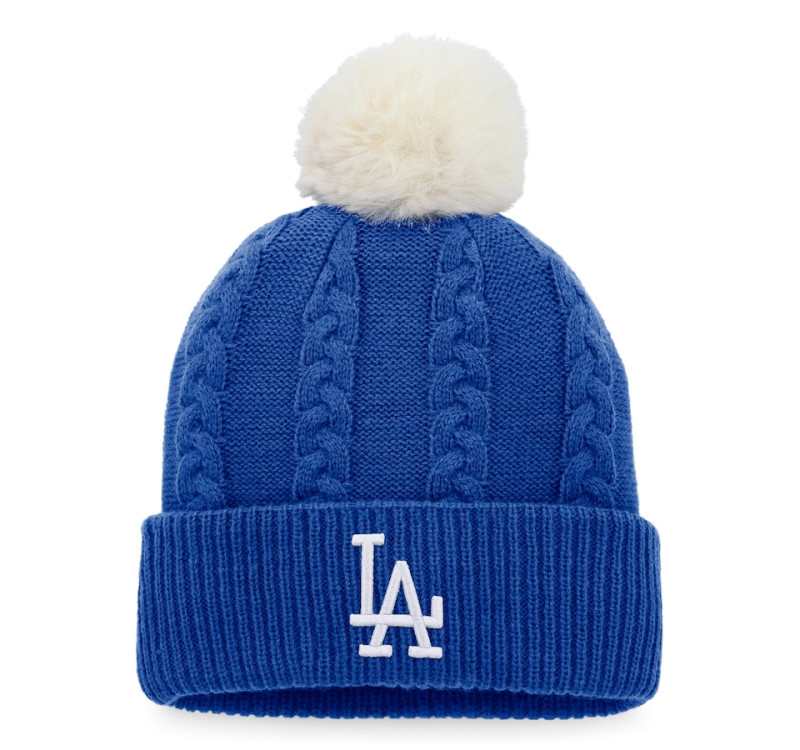 - Women's Dodgers Baseball Cable Cuffed Knit Hat with Pom - Royal