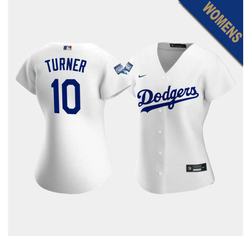 - Women's Dodgers Justin Turner #10 White 2020 World Series Champions Replica Jersey