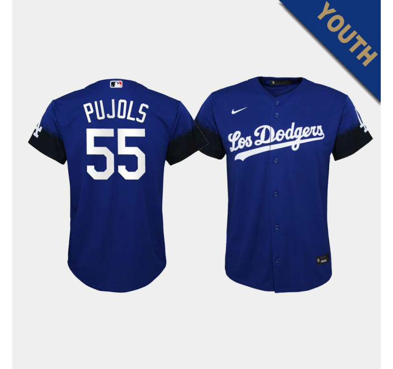 - Kid's Dodgers Albert Pujols #55 Royal 2021 City Connect Replica Jersey