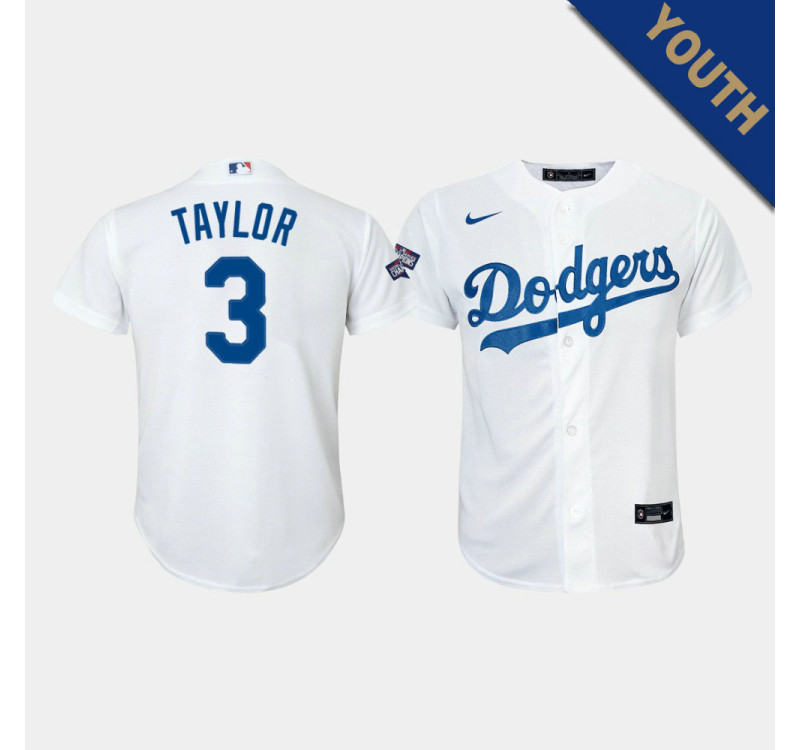 - Kid's Dodgers Chris Taylor #3 White 2020 World Series Champions Home Replica Player Jersey