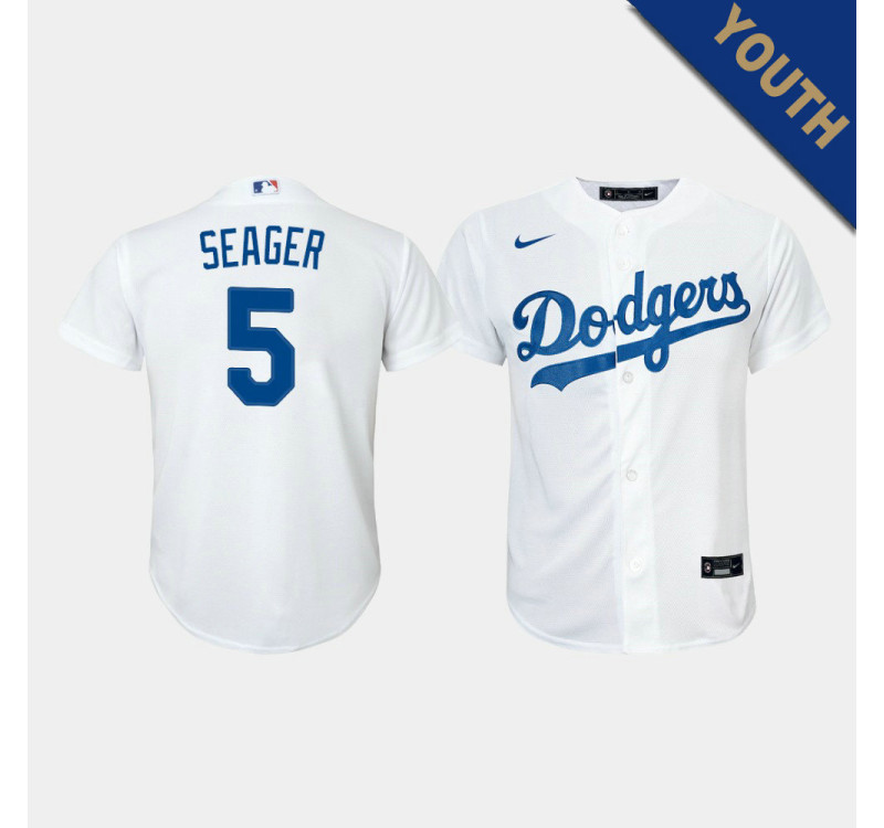 - Kid's Dodgers Corey Seager #5 White Replica Home Jersey