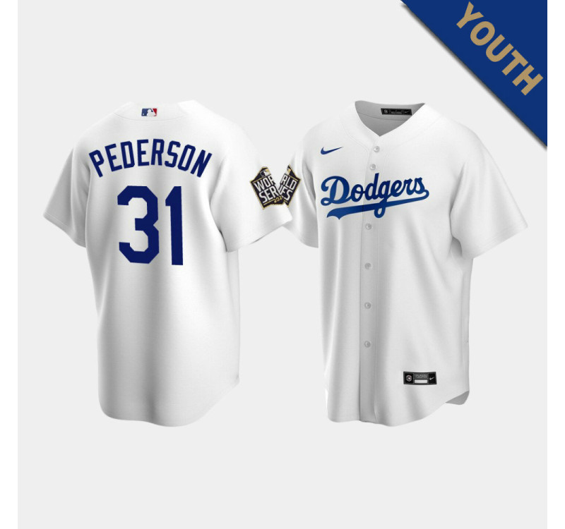 - Kid's Dodgers Joc Pederson #31 White 2020 World Series Replica Jersey